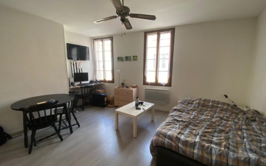 Situé au dernier étage d’un petit immeuble du centre ville rue Valade, superbe 2 pièces aménagé et équipé avec gout et qualité: pièce à vivre avec rangements et espace bureau, cuisine ouverte toute équipée, chambre avec placard, salle de bains avec WC.